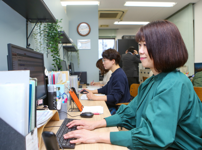 現在、当支社では保険商品ごとに担当の事務スタッフが決まっているので、担当する商品についての知識を深め、スムーズにご提案から契約まで進めるようサポートしています。また保険商品には契約の際の決まりごとが多く、抵触すると契約し直す必要も出てくるため、常に最新の情報を細部までチェックしながら、契約に漏れや不備がないか確認しています。